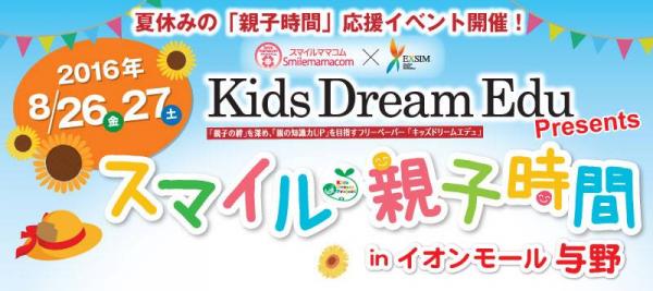 フリーペーパー・Kids Dream Eduは、創刊1周年記念で初のイベントとなる、夏休みの親子時間を応援するイベント「スマイル親子時間」を8月26(金)・27日(土)に、イオンモール与野「リーフコート」(さいたま市中央区本町西)にて開催いたします。本イベントは「子どもの職業体験」、「子どもの知識を広げる」、「親の知識力UP」の3つの軸に、地元作家、講師や企業ブースが一丸となり「生け花体験(26日)」、「美容師体験(26日)」、「ゆかたでキッズモデル体験(両日)」など約20種類のステージ、ワークショップを実施いたします。