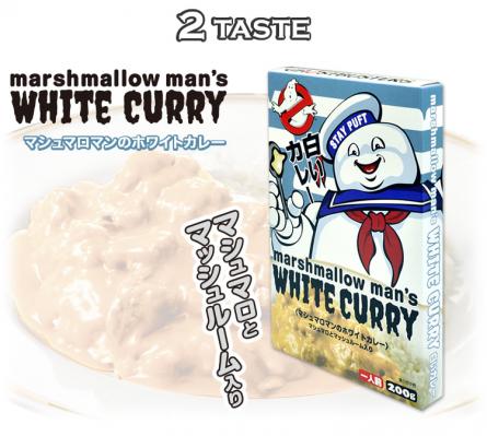マシュマロマンの白いカレーには、白いマッシュルームと彼を模した甘い
