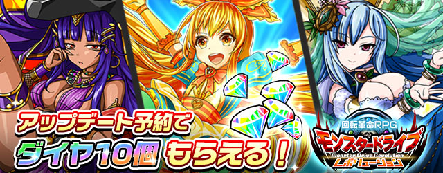 事前予約していただいた方全員にダイヤ10個が貰えるキャンペーン情報を、アップデート後に配布いたします。