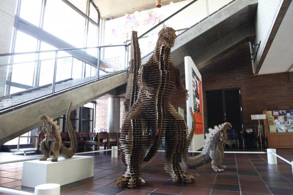 福岡市美術館に段ボール製 巨大シン・ゴジラ登場