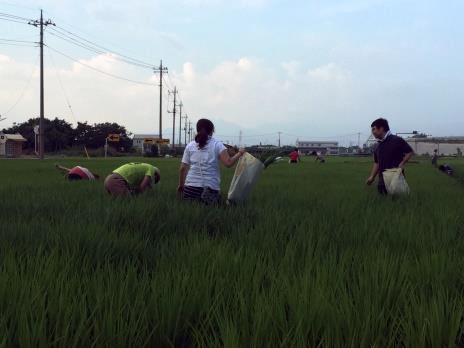 「まちいくふじかわ」は、山梨県富士川町で120年前まで作られていた幻の日本酒「本菱」を復活させ、新たなビジネスモデルを作り、町の活性化を目指す地域活性プロジェクトです。6回目となる今回は、2ヶ月前の田植え時と同様に、富士川町在住で酒米を始め数多くの農作物の栽培を手掛けるワンドリーズ株式会社代表の名執雅之(なとりまさゆき)氏にレクチャーしていただきながら、田んぼの除草作業を行いました。稲の減収を招くヒエは、稲と見分けるのが困難な雑草。軽トラックの荷台がいっぱいになるほどの雑草を取り、お米を育てることの大変さをメンバー全員が身を持って体験しました。