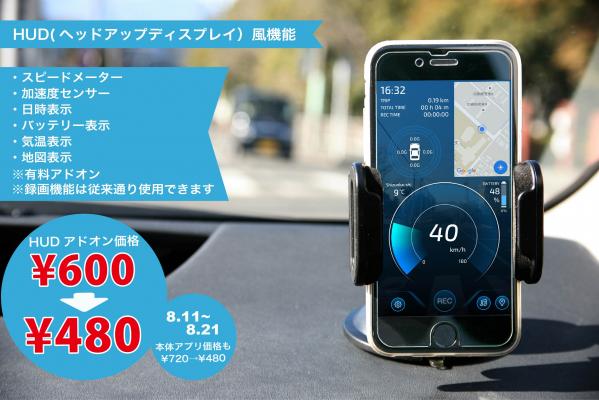 株式会社トライテックは、株式会社 恭和と共同開発・販売しているiPhone用多機能ドライブレコーダーアプリ「マルチドライブレコーダ2」のサマーセールを、2015年8月11日(木)から21日(日)の11日間限定で実施致します。 アプリ本体・ヘッドアップディスプレイアドオン、それぞれを通常価格720円から240円OFFの480円で提供致します。夏休み期間中の安全運転、交通事故の抑制のため、この機会に是非、弊社のドライブレコーダーをご活用ください。
