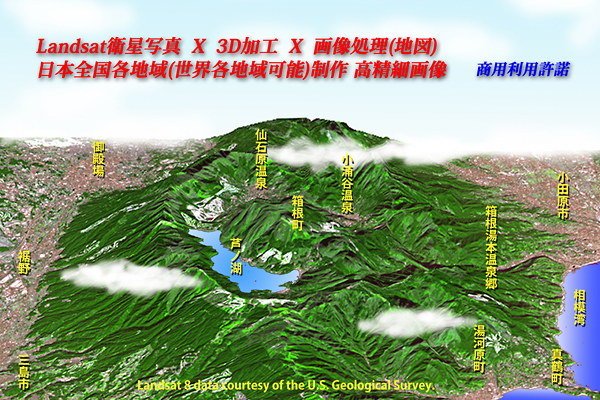 衛星写真(ランドサット等)及び国土地理院、公な地図データを使用