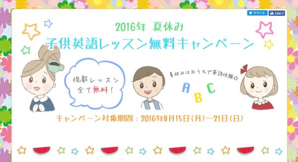 ◆カフェトーク「2016年夏休み 子供英語レッスン無料キャンペーン」について