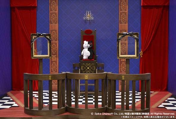 その第1作目である「希望の学園と絶望の高校生」に登場した「モノクマ椅子」や「証言台」など”学級裁判”が行われた裁判所を1/1で再現した記念撮影ブースを、「COSPATIOスペシャル撮影スペース」としてご用意しました。