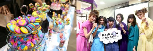 当日はインスタグラムに思わずUPしたくなる“RAINBOW SWEETS”を相羽瑠奈ディレクションにより食の専門校レコールバンタンの学生が提供。そのケータリングと絡めて『RAINBOW SHAKE(レインボーシェイク)』の衣装を着用したモデルによるインスタレーションショーが行われました。