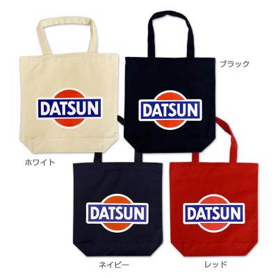 DATSUN(ダットサン)ロゴがデザインされた、使いやすいサイズのシンプルトートバッグ。