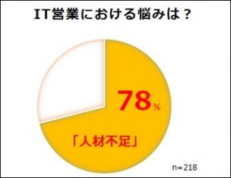 カレンが2016年8月に実施した「BtoB企業の実態調査(有効回答数930名、従業員300名未満の中堅・中小企業が対象)」では、全体の約3割が「顧客・商談増加のため、IT営業にもっと力を入れるべき」と回答しました。そのうち約7割が「自社のIT営業に課題がある」と回答し、課題の内訳の約8割は「人材不足」に関するものでした。