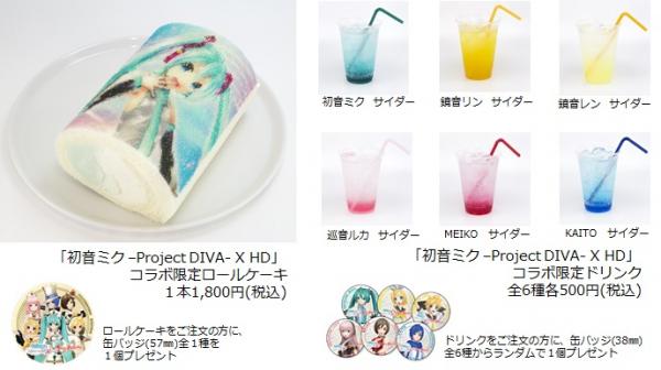 今回はスイーツパラダイスケーキショップ ヨドバシAkiba店、新宿メトロ店にて、8月25日(木)より、 PlayStation(R)4「初音ミク -Project DIVA- X HD」とのコラボレーションロールケーキとドリンクの発売を開始いたします。ロールケーキ1点ご購入につき、缶バッジ(57mm)全1種を1個、ドリンクを1点ご購入で缶バッジ(38mm)全6種からランダムで1個プレゼントいたします。
