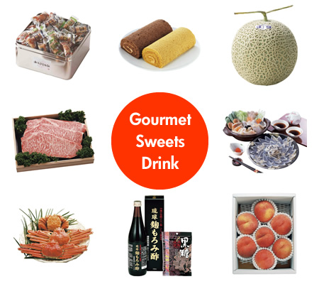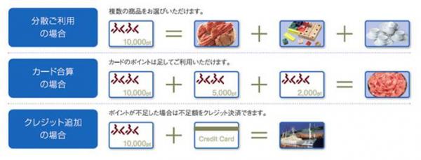 選べる交換アイテムは、ブランド和牛・ブランド米なども含め「農産・海産・畜産」やスィーツや加工品も含めたMade in JAPANグルメが多数揃いつつ、生活応援グッズなどレストラン食事券なども充実している。季節限定グルメや健康志向の昨今であるもろみ酢ドリンクなどが選べるのも特徴である。