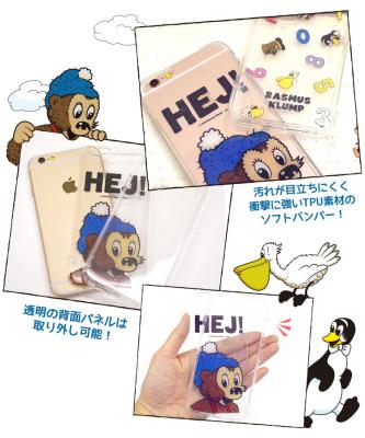 ラスムスのデザインが施された透明の背面パネルがセットになったiPhone6s/6用カバーです。