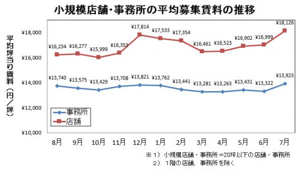 小規模店舗(20坪以下)の平均募集賃料は、前月から6.6%上昇しました。