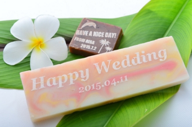 MARIANA OCEANの石鹸はオールハンドメイドでひとつずつ丁寧に作られています。そのため凝縮された成分がギュッと詰まり、固くぎっしり重みがあるのが特徴です。そこで今までの固形石鹸では不可能であった”刻印”が可能になりました。そこでMARIANA OCEANでは大切な方への贈り物として、記念日やお名前を刻印できる<MARIANA ネーミングサービス>を行っております。石鹸をはじめソープトレイやプレート、タグなどお客様のお好みに合わせて、お名前や記念日、メッセージを刻印致します。ご友人のお誕生日や結婚式の引き出物としても大変ご好評頂いております。心のこもったメッセージを、マリアナ諸島の素敵な香りと共に大切な方へお届けください。 【刻印サービス】\700/1点