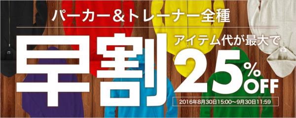●概要:オリジナルパーカーやトレーナーのアイテム代を通常価格より最大25%OFF