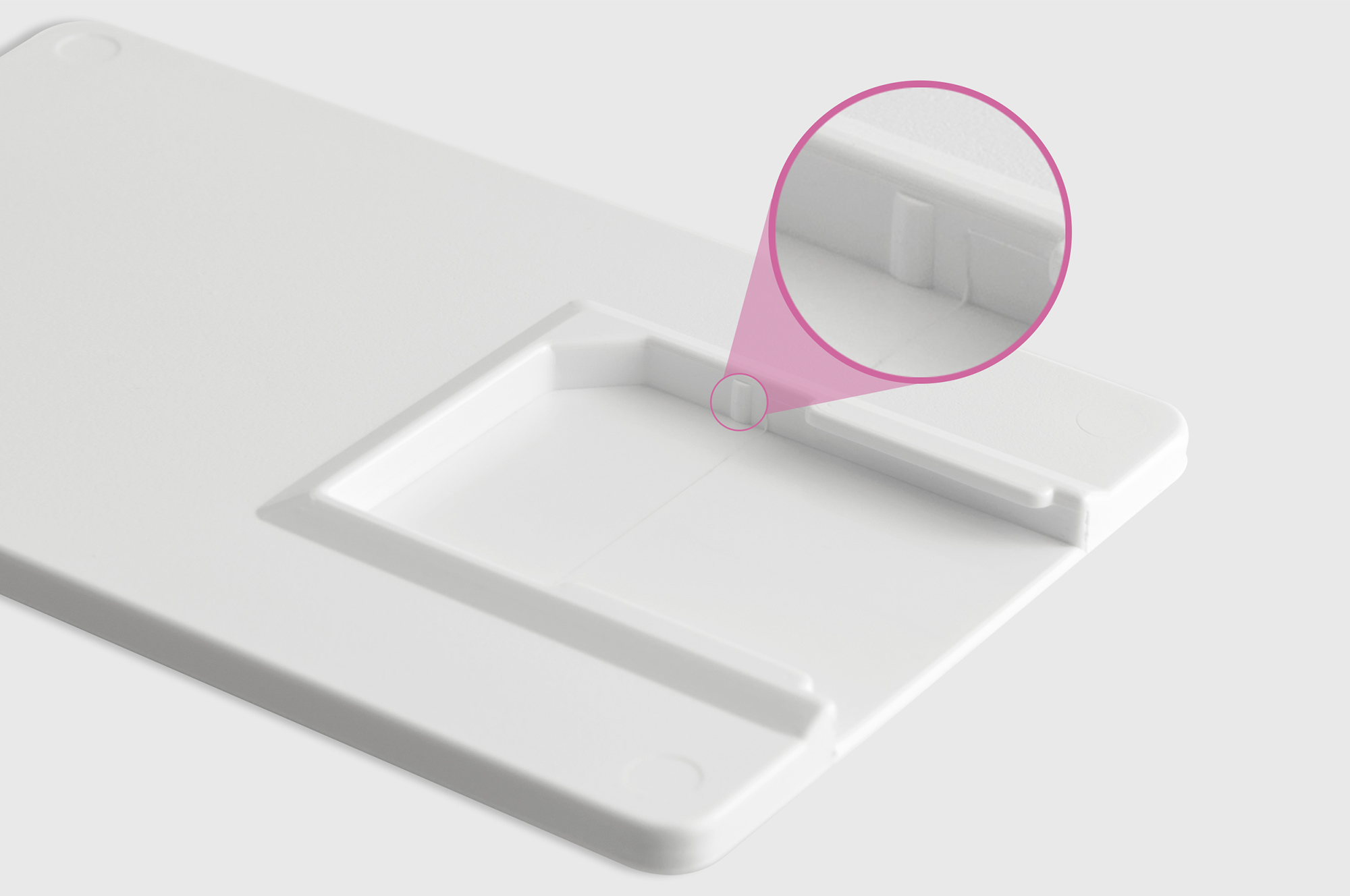 小さな突起を追加したことで、SDカードメディアのより確実なロックが可能となりました。ほんのわずかな変更点ですが、これにより旧製品では少し重かったスライド部分の動作を軽くすることができ、結果としてメディアの出し入れがよりスムーズに行えるようになりました。