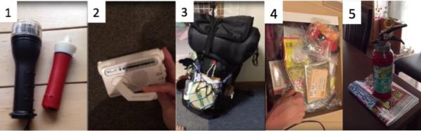 4.必要になるものを確実に持ち出せるよう、ライトやナイフやレジャーシートなどがセットになっている市販の防災セットを購入して置いています。