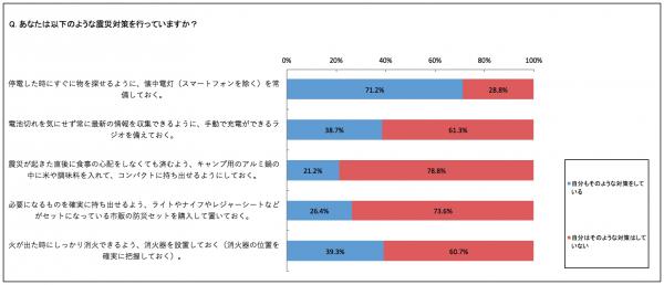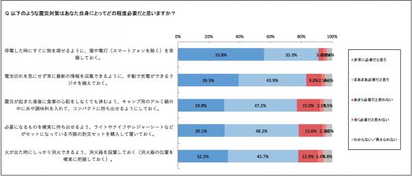 しかし、ほとんどの方が必要性を感じている中で実際に対策を行っている方は少なく、現状は懐中電灯の準備ぐらいしかできていないことがわかりました。