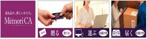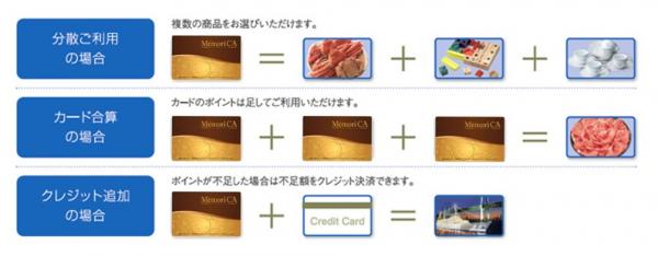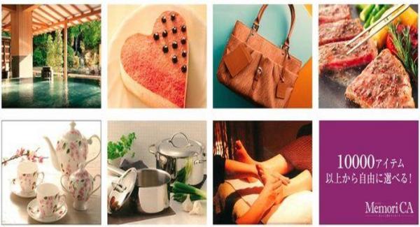 インターネットで様々な10,000アイテム以上の商品と交換が可能なポイント型ギフトカードである。外出しなくてもパソコン・スマホ・タブレットで、いつでも、どこでも商品選び、そして選んだ商品はご希望先へ宅配なので便利である。所謂、カタログギフトのWEB版とも言える。更にカタログでは叶える事が出来なかったポイント型ギフトだからこそ「複数の商品と交換」。MemoriCA(メモリカ)を複数所有なら「合算して利用」。欲しいものがポイント不足なら交換サイト内で「クレジット追加決済」が可能である点も大きな特徴である。