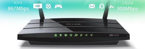 このデュアルバンド無線LANルーター「Archer C5」は、すでに販売されている「Archer C7」の姉妹機で、新世代Wi-Fi規格の802.11acに対応しているため、N規格よりも最大で3倍のデータ転送が可能となり、最大で1.2Gbpsの伝送速度を実現しました。また、5GHzで最大867Mbps、2.4GHzで最大300Mbpsのワイヤレスデータ転送が可能で、ご家庭のマルチメディアネットワークの構築に最適です。