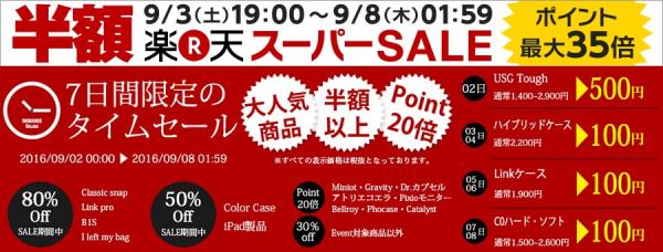 株式会社 KODAWARIが運営する、楽天サイト「SHOWCASE Online」にて、楽天スーパーセール(9/3 19:00開催)にちなみ、7日間限定のイベントを開催する。期間中は、全製品ポイントが20倍で、中には80%オフの製品も。また、日替わりでタイムセールも行います。タイムセールの内容は下記のとおりです。