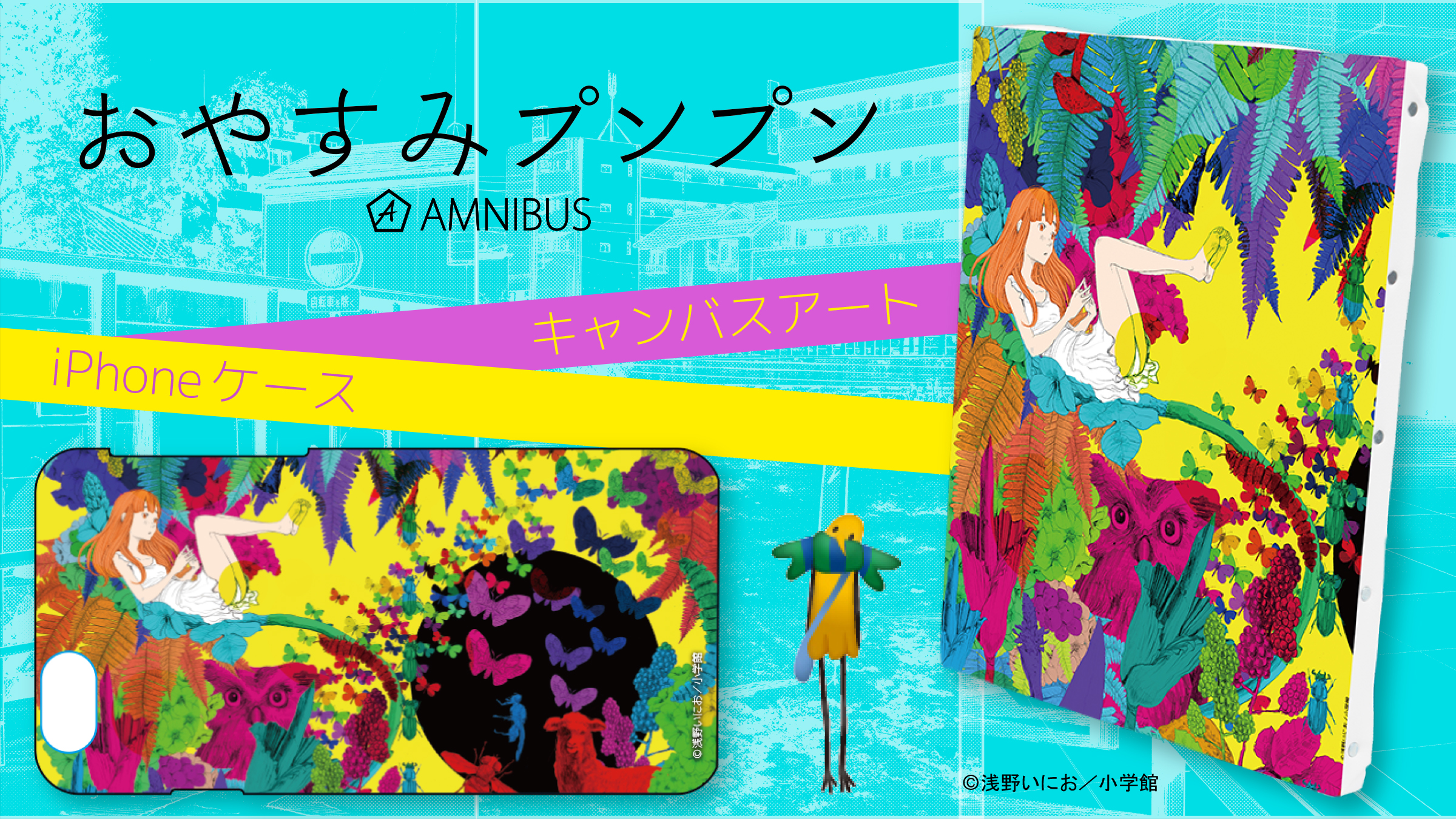 『おやすみプンプン』のイラストの中でもひときわ鮮やかな一枚を、iPhoneケースとキャンバスアートに仕上げました。