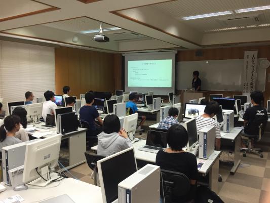 主に地元の中高生が受講し、iOSアプリの開発環境の基本的な使用方法や、実際のアプリケーションの開発の手法、流れ、また、今回はiOSに加えて、一部Androidの講習も行い、iPhoneだけでなく世界的にシェアが多いAndoridについても学ぶことが出来る内容となりました。