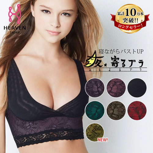 当社では、2013年4月から睡眠時にバストの横流れを防止するナイトブラ「夜寄るブラ(R)」を発売。昼間の補整だけではなく、寝ている間にバストをサポートすることの重要性を、当商品を通じて訴求してきました。バストを押しつぶさないための胸元が大きく開いた形状や、レース調のエレガントなデザイン、寝ている間もバストを優しくサポートする安心感などにご好評いただき、現在では、累計販売数が10万枚を突破(2016年7月時点)する人気アイテムとなっています。購入者からは、「ほど良いホールド感で、寝てる間も安心出来る」「脇肉キャッチャーと併用したい」といったお声をいただいています。