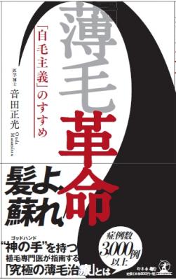 そこで、長年にわたる植毛治療および薄毛治療を通じ、3000人を超える患者と向き合ってきた薄毛治療の専門家、親和クリニック総院長 音田正光(新宿区新宿2-12-4アコード新宿5F)が、幻冬舎メディアコンサルティングより“薄毛革命~「自毛主義」のすすめ”を9月9日に出版する。医学的根拠に基づいた、髪の常識、非常識を解説。また、しっかりとした医学的根拠(エビデンス)による最新の治療法を実際の患者の声もまじえ紹介する。