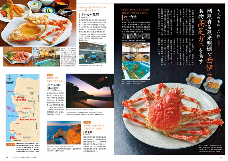 「大人の美味しい旅」では、秋冬の時期にこそ食べたい食材を使った料理で名高い店をご紹介。両国×鍋料理、秦野×新そば、西伊豆×高足ガニ、大洗×あんこう鍋、勝沼×ヌーボーワイン、上田×松茸の6テーマを特集しました。編集部が選び抜いたお店は各テーマ3つまで。厳選しています。