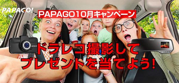 PAPAGO JAPAN株式会社は、豪華賞品が当たるPAPAGO!キャンペーン10月号「ドラレコ撮影してプレゼントを当てよう!」を2016年10月10日(月)まで実施します。 詳くはキャンペーンページをご覧ください。