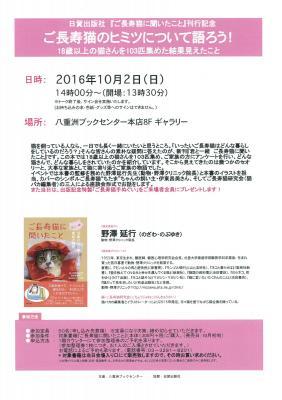 日貿出版社が10月4日(火)に発刊する、『君と一緒 ご長寿猫に聞いたこと ~18歳以上の猫103匹と家族の物語』の発売を記念して、東京八重洲ブックセンター本店8階において、出版記念イベント