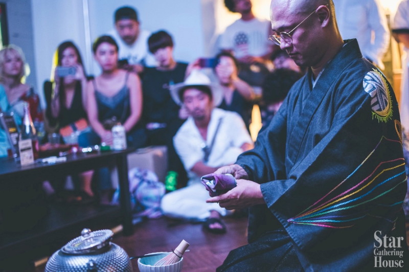 2016年9月3日(土)、原宿のギャザリング専用スペースStar Gathering House(スターギャザリングハウス)において、裏千家茶道准教授の茶道家、松村宗亮さんがホストを務める、上記スペースのグランドオープンを飾るオー プニングイベントが行われました。主催は、日本でのホームパーティーカルチャーの普及を目的として、ホームパーティー検定などを行う一般社団法人日本ホー ムパーティー協会(http://hpaj.org) と、ホームパーティー協会公式アンバサダーでもあり、泡にまみれて踊る音楽イベント「泡パ」や、街中を巨大スライダーで滑る「スライドザシティ」など、話 題の体験型コンテンツを仕掛けるパーティークリエイター 「アフロマンス」率いるAfro&Co.(代表:アフロマンス)によるものです。