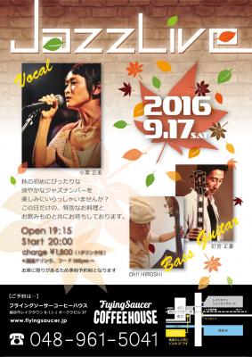 日本最大級・アジア有数の巨大ショッピングセンター:イオンレイクタウンでおなじみの越ケ谷レイクタウン駅すぐ側にある「Flying Saucer COFFEE HOUSE」(埼玉県越谷市、運営会社:株式会社ジェブ)にて、「JAZZ Live」を2016年9月17日(土)に開催致します。イベント当日には、越谷市でご活躍中の地元JAZZアーティスト:小栗正美様、釘宮正豪様、Oh!!HIROSHI様の3名様が生演奏をお披露目致します。当カフェにおける今回のイベントが、地域住民の方々と街の絆を結ぶための良ききっかけとなれば幸いです。