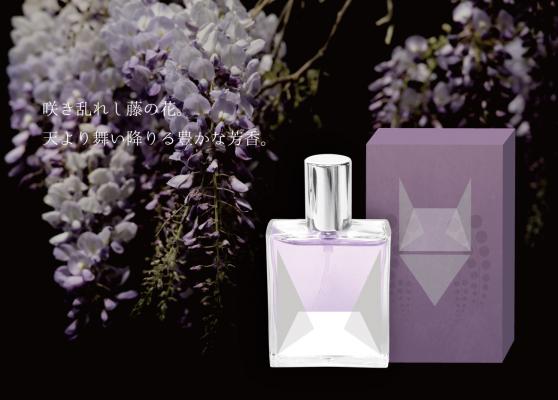 トップの少し冷たい印象から、解き放たれるかのように広がる甘さは、凛と咲き誇る藤の花をイメージ。