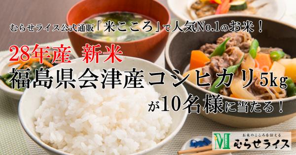 「むらせライス 28年産新米『福島県会津産コシヒカリ 5kg』が10名様に当たる」