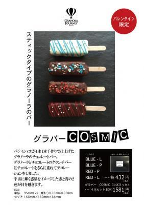 バレンタイン限定の商品は、宇宙に輝く惑星をイメージした赤と青の2色が織りなす特別なグラノーラバーです。