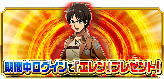 期間中にモンドラにログインしたユーザー全員に「☆5 エレン・イェーガー」を1体プレゼント致します!