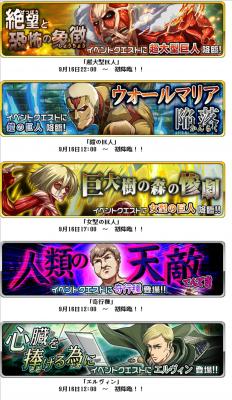 「進撃の巨人」コラボイベントクエストが期間限定で開催されます!