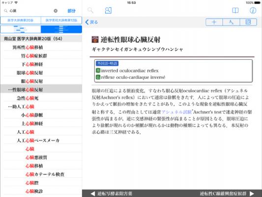 ・日本語の医学用語だけでなく、欧文用語でも検索することができます。