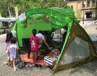 グランピングでは、テント内に豪華なアウトドア用品を揃え、普段の家庭生活をそのままに、アウトドアで楽しく過ごすことを体験していただきました。