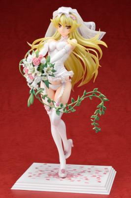 可愛らしいキャラクター造形だけでなく、クリア成形が映えるヴェールや手に持ったブーケ、特製台座に施された花びら模様などウェディングドレスらしい装飾も必見です!一部パーツは脱着可能仕様で、ドレスの下の美しい肢体も堪能できるお得仕様。