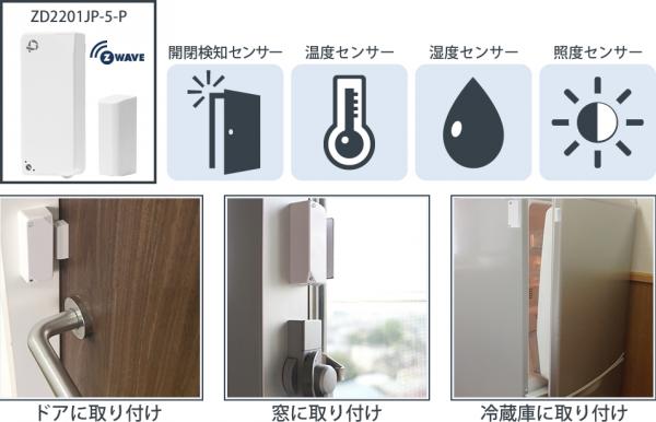 対応するZ-Waveセンサーとして、1台で開閉検知、温度、湿度、照度の4つの機能を持つ多機能無線センサー『ZD2201JP-5-P』を同時に発売いたします。
