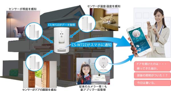 今回発表する『カメラ一発!(CS-W72Z)』が対応する無線センサーは、Z-Wave(R)という世界標準規格のため拡張性が高く、お客様それぞれに最適な自分だけのIoT環境を構築することができます。