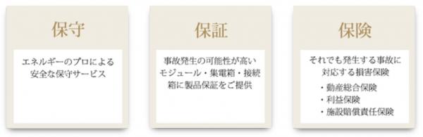 事故や天災のリスクが高い太陽光発電物件は、長期の保険に加入することができない現状があります。しかし、年間を通じたメンテナンス、PVM2による高品質保守に保証・保険を組み合わせた新パッケージを実現。保守契約の際に、適切な保証・保険をトータルで案内する仕組みを整備しました。