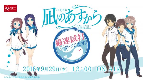 遊技機メーカー・ネット株式会社(本社:大阪市 代表取締役:国本幸司)は、9月29日(木)に開催されます「パチスロ 凪のあすから」新機種お披露目会の中で、人気パチスロライターの3人が、当機種の最速試打を行うコーナーがございます。この模様をニコニコ生放送の当社公式チャンネル「NET SLOT LIVE!!」より生中継します。放送開始は、2016年9月29日(木)13時を予定しております。