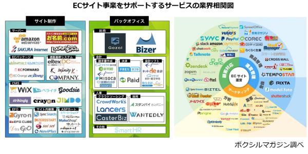 スマートキャンプ株式会社(本社:東京都港区代表取締役:古橋 智史)が運営するボクシルマガジン(URL:http://boxil.jp/magazine/ 以下、ボクシルマガジン)は、2016年9月27日(火)、『ボクシルマガジン』にてECサイト事業に関連するサービスのまとめ及び、業界相関図を公開しました。また同時に、法人サービス口コミ・比較サイト『ボクシル』でもECカテゴリを新規で立ち上げました。