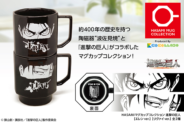 スタッキング可能な波佐見焼のマグカップをはじめ、グッス収納に最適な調査兵団専用コンテナやかわいいキャラクターが描かれた各種スマホグッズとパスケースが登場!