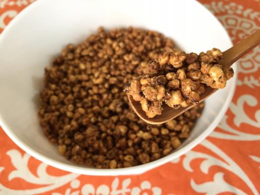 押し麦ではなく、麦の粒をそのままグラノーラに。押し麦に加工する過程で、糖質が高まり、脂質、繊維、灰分、無機質、ビタミン類がやや低下する事を防ぎ、大麦本来の栄養をまるまる摂れます。