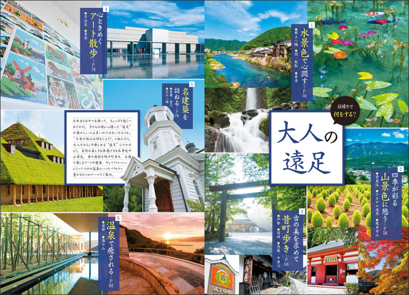 今年3月に発売した昭文社ムック『首都圏発 日帰り 大人の小さな旅』は、「思い立ったらすぐ行ける」「ちょっとした発見がある」「おしゃれでちょっと贅沢」な大人の好奇心を満たすおでかけを提案するガイドブックで、定番スポットも新たな視点で歩く「大人の街めぐり」、自然の恵みや歴史に触れる「大人の遠足」、ちょっと贅沢なランチを楽しむ「大人の美味しい旅」、の3テーマで構成されています。