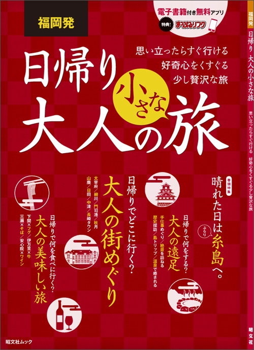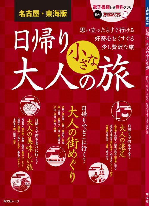 株式会社昭文社(本社:千代田区麹町、代表取締役社長 黒田茂夫、東証コード:9475)は、思い立ったらすぐ行ける、大人のおでかけ提案型ガイドブック『日帰り 大人の小さな旅』シリーズの続刊として、『名古屋・東海版 日帰り 大人の小さな旅』『福岡発 日帰り 大人の小さな旅』を10月13日より、それぞれ東海エリア及び福岡エリアの書店等で発売いたします。